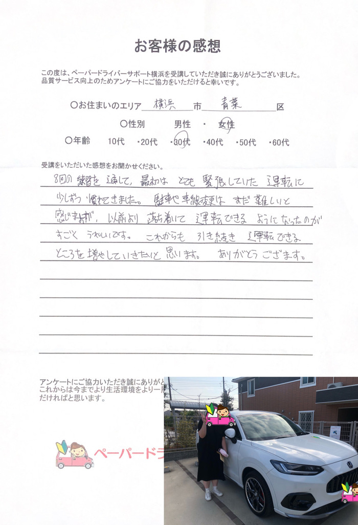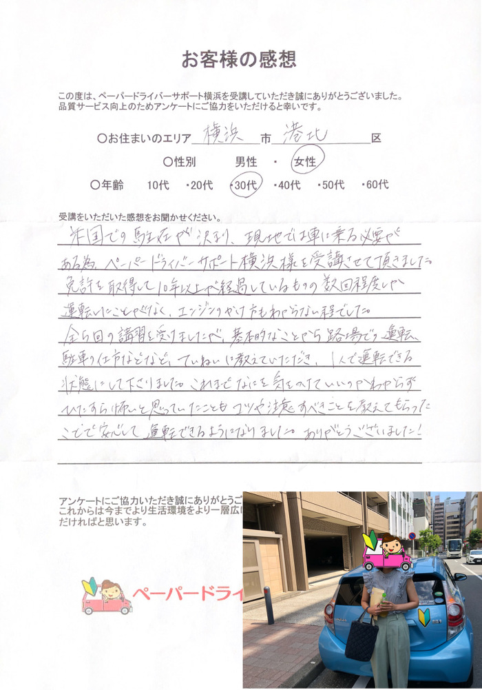 講習を受けて5か月ほど経ちますが、現在は近くのスーパーのみならず横浜や新横浜などへも気兼ねなく運転できるようになりました。